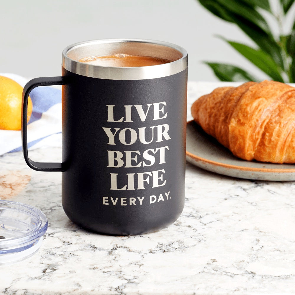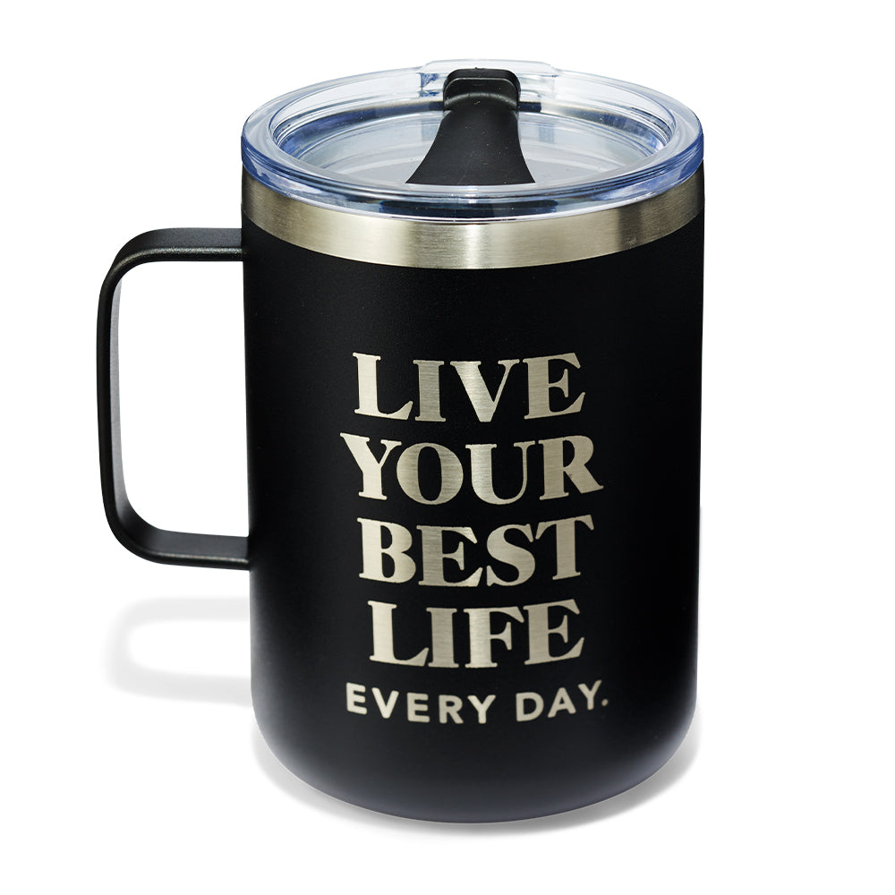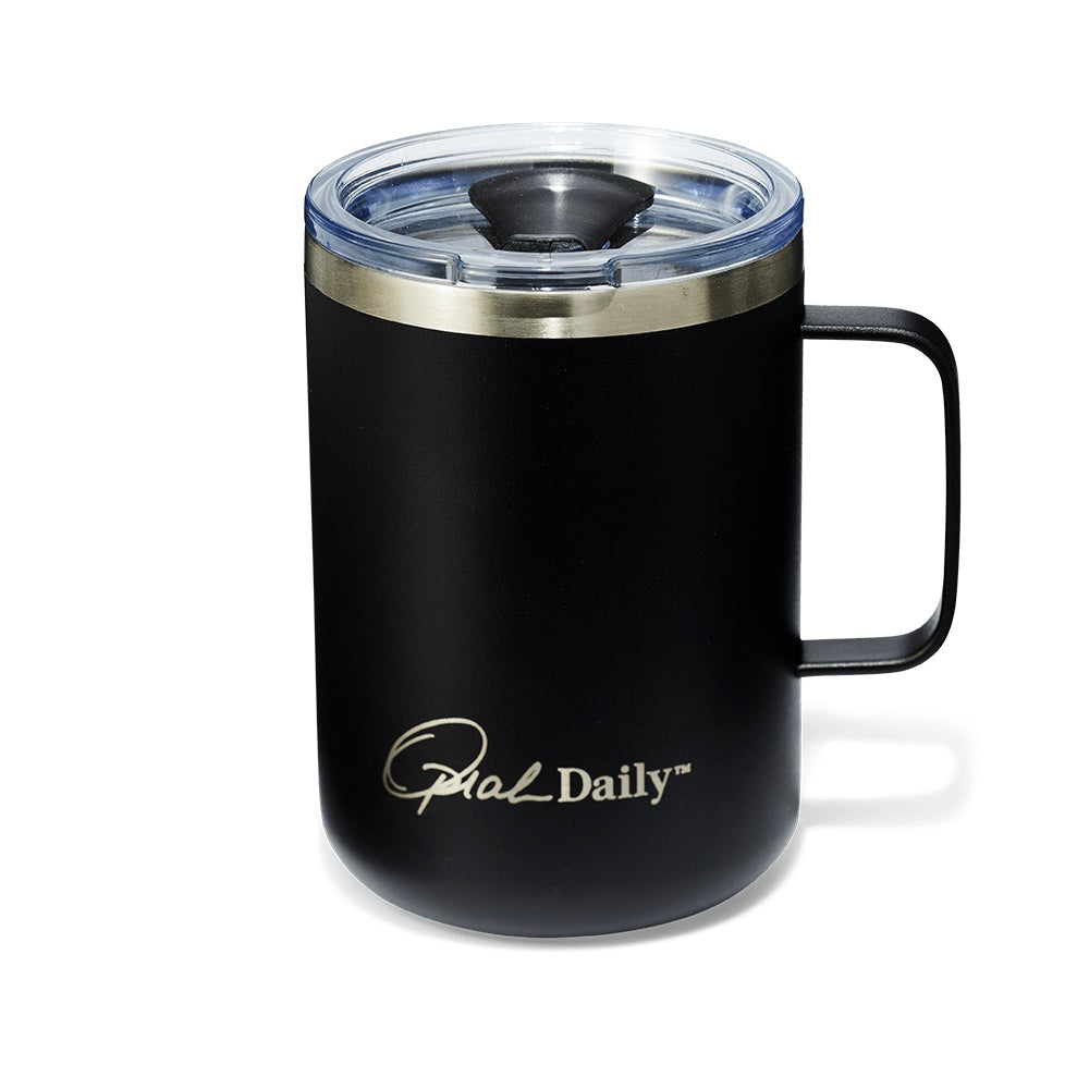 - Feel inspired with every sip from Oprah’s The Life You Want Black Camper Mug and keep your favorite beverages hot or cold in a beautiful travel mug that comes with an extra serving of empowerment from Oprah Daily. Complete with a powder-coated matte finish, double walled stainless steel and a push on lid, this mug keeps beverages hot for up to 6 hours or cold for up to 8